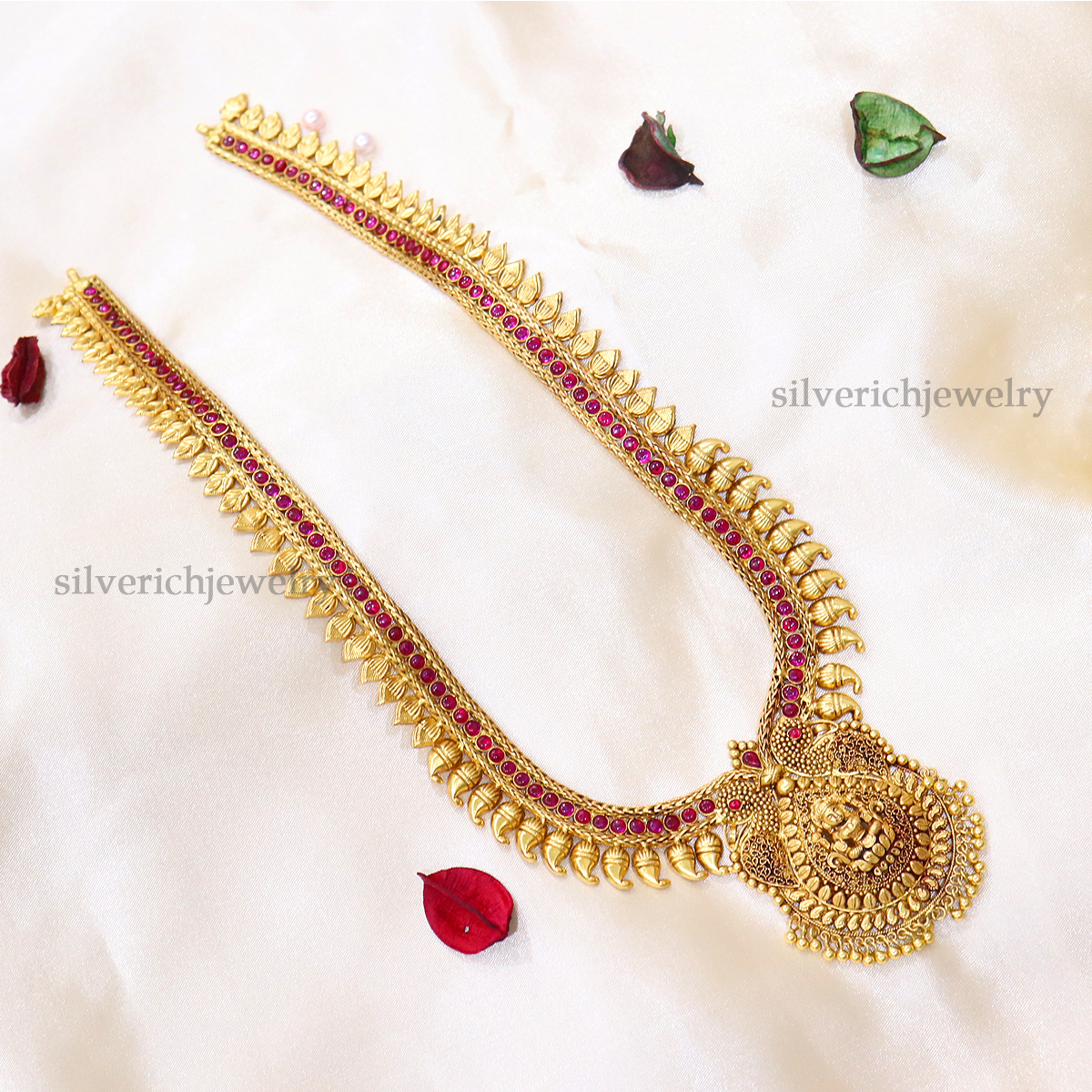 92.5 Silver gold plated haram with semi precious stones