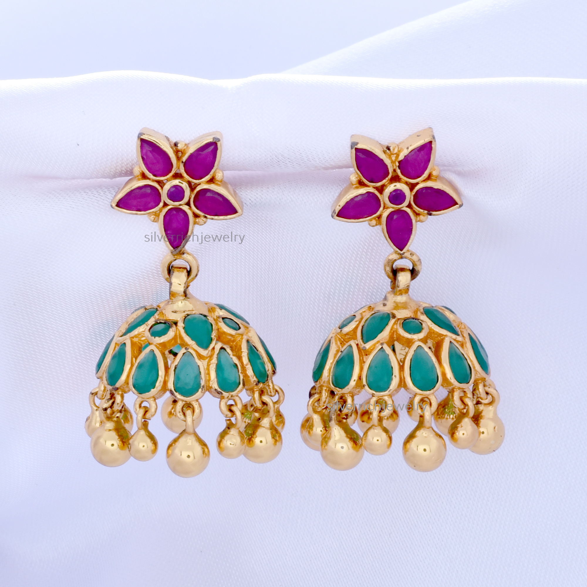 92.5 Silver gold plated jhumka with semi precious stones