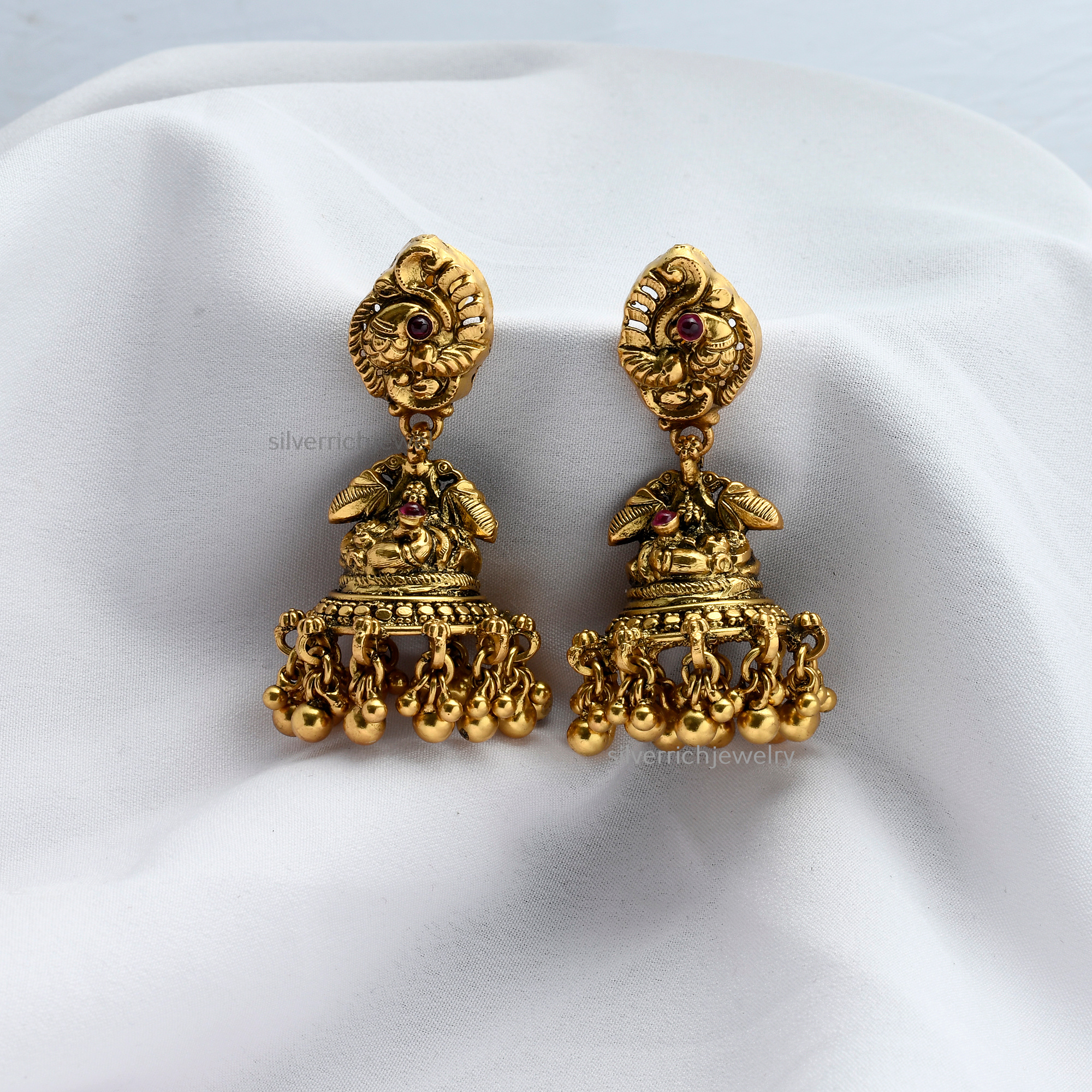 92.5 Silver gold plated jhumka with semi precious stones