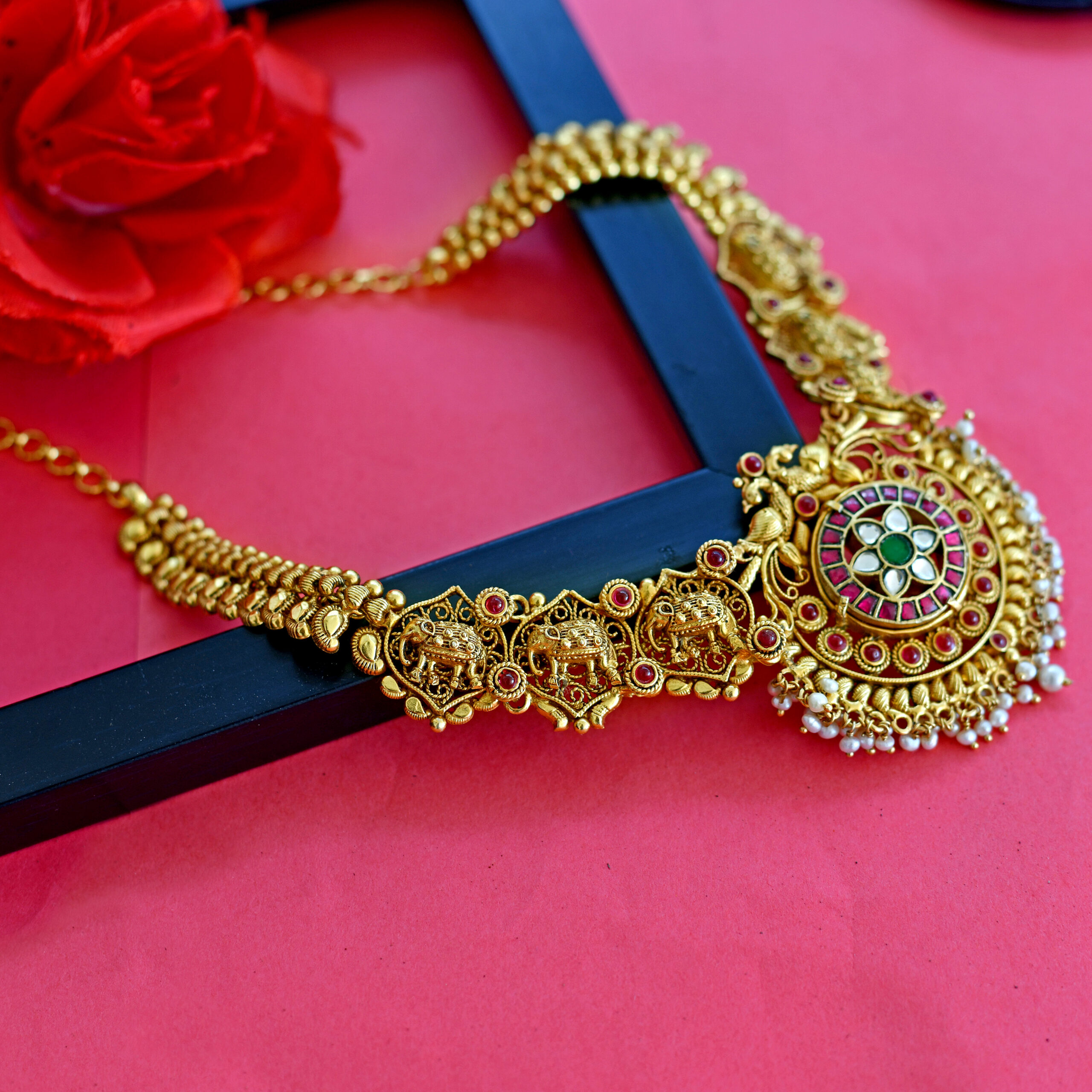92.5 Silver gold plated necklace with semi precious stones