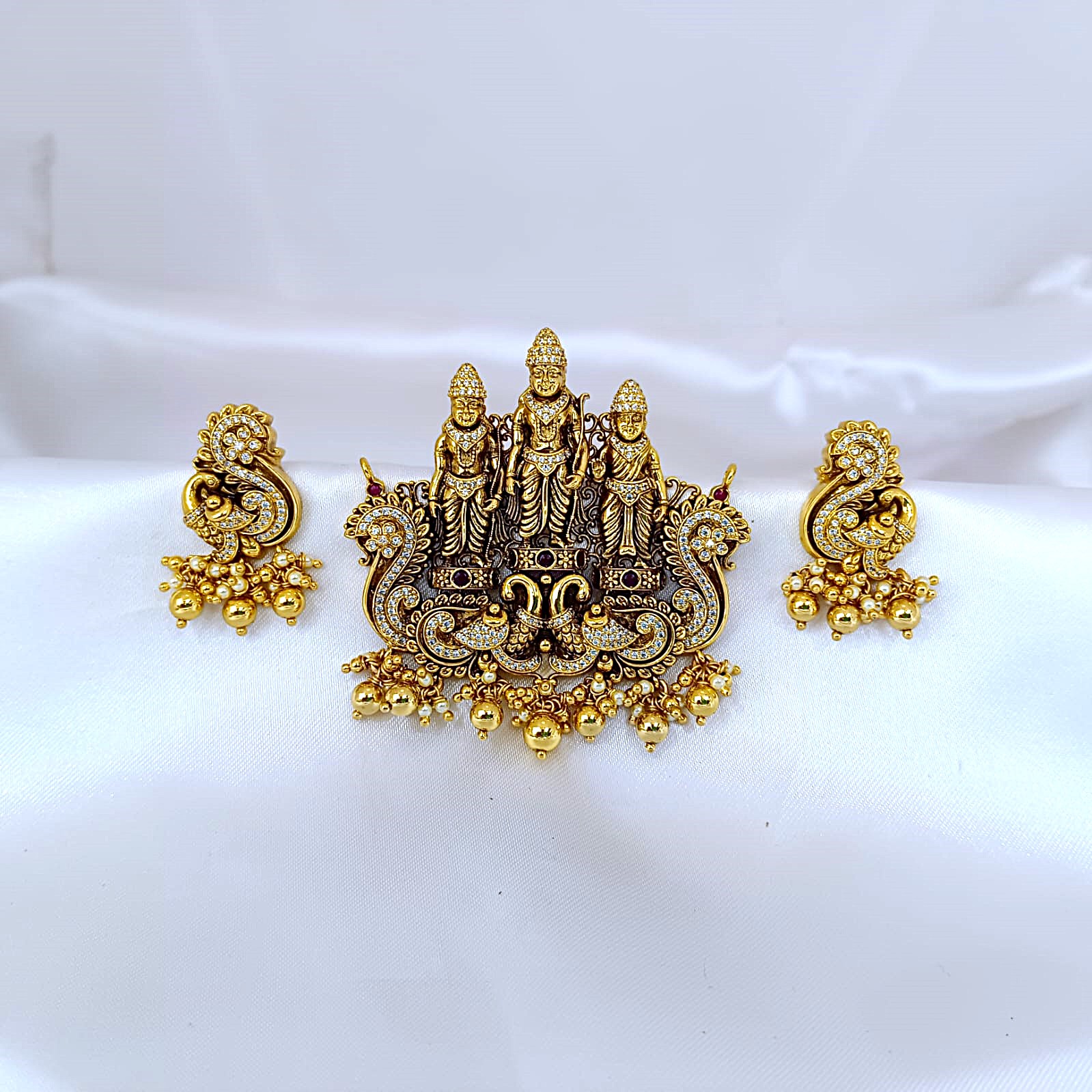 LENGTH OF THE PENDANT(cms):6.8 WIDTH OF THE PENDANT(cms):6.4 LENGTH OF THE EARRING(cms):3.2 WIDTH OF THE EARRING(cms):2